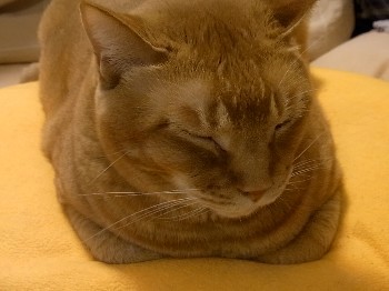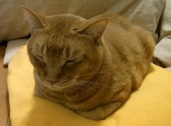 これがお手本のような猫の香箱座り。前足と後足と尻尾を畳んだ省エネモード。横から見るとこんな感じ。小さい秋である。※前の記事は左の「社員猫の部屋」で読めます。