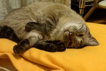 ![]() 前足と後足がこんがらがって、良くわからない姿勢。 ノンは保守的で、暑くてもフリースの上でまるくなる。 ※前の記事は左の「社員猫の部屋」で読めます。 |