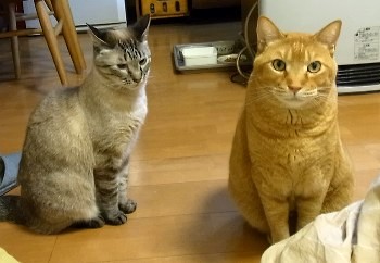 ノンの困り顔とクリの居直った表情を見ると何やら良からぬ相談のようだ。※前の記事は左の「社員猫の部屋」で読めます。