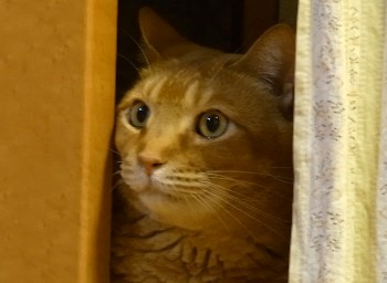 視線を感じると、ドアの隙間からじっと中を見ている。「家政婦は見た」みたいだ。※前の記事は左の「社員猫の部屋」で読めます。